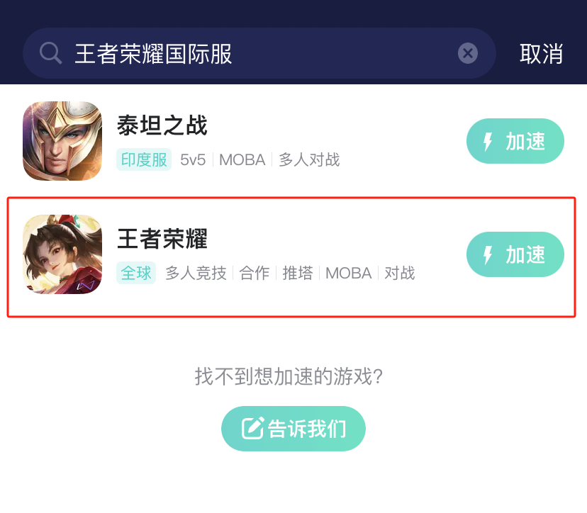 首先:玩家可以在UU手游优化工具中搜索《王者荣耀国际服》。