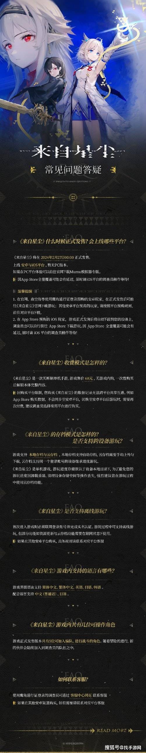 熟悉《明日方舟》手游的玩家都知道,游戏制作商鹰角网络在几年前就开始制作一款叫《来自星尘》的手游,这款手游当时立项就说了会是买断制的手游,最近也是爆料了游戏的上线时间是下个月的27号下面是具体介绍!