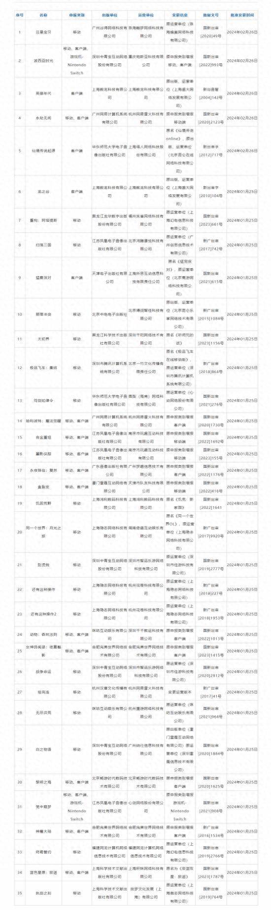 24年游戏审批变更信息公布:《永劫无间》手游过审