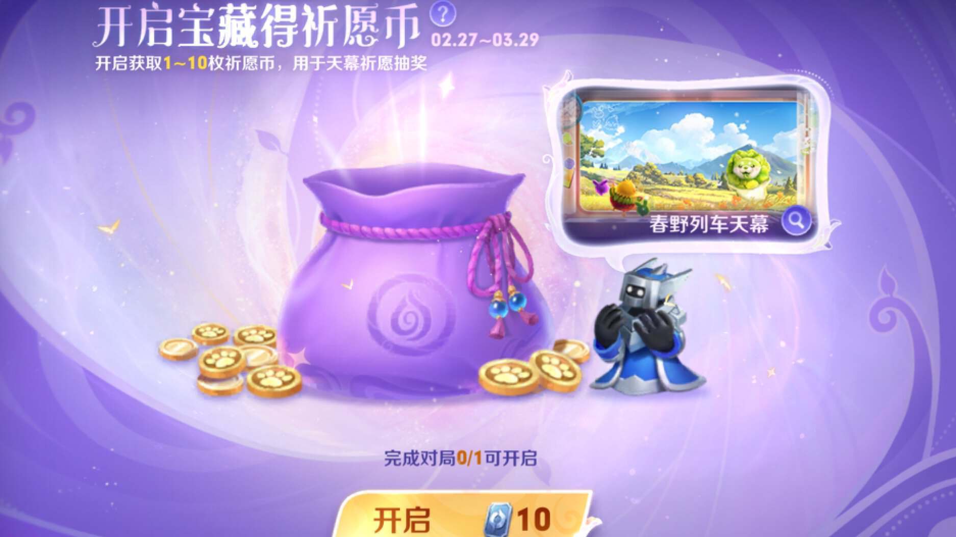 和蔬菜精灵联动不仅仅推出了专属皮肤,还推出了专属天幕,叫做春野列车,天幕通过抽奖获取。而官方也上线了对应的活动,叫做云梦宝藏,这个和活动需要玩家参与对局才能够开启,参与对局之后,就可以花费10点券开启宝藏,最该有概率获得10个抽奖道具,价值600点券。