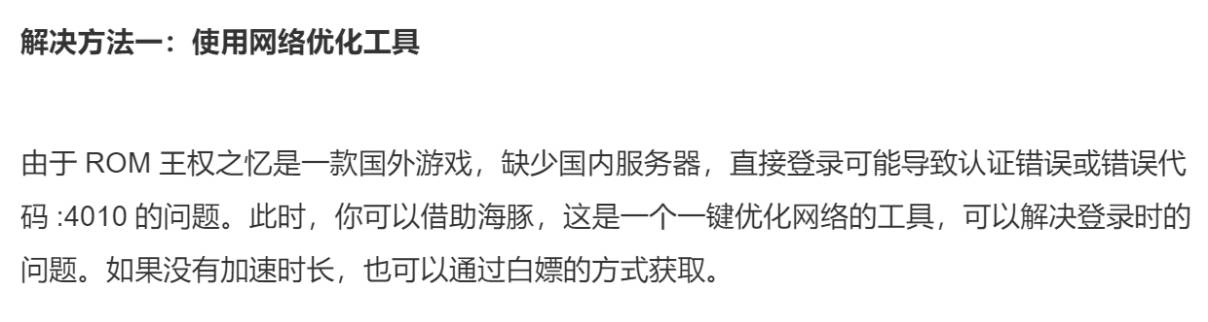 ROM王权之忆是一款令人兴奋的MMORPG网游,让全球玩家能够在同一服务器中相遇,实现跨平台互通。在这个游戏中,你可以与来自世界各地的玩家一同组队,战斗,培养,相互合作,共同提升实力。通过自由交易,你还有机会获得金钱收益。对于那些对此感兴趣的小伙伴,不妨尝试一下这款富有创意的游戏。然而,有时候在登录时可能会遇到认证错误或错误代码:4010的问题。下面将为大家提供一些解决方法。