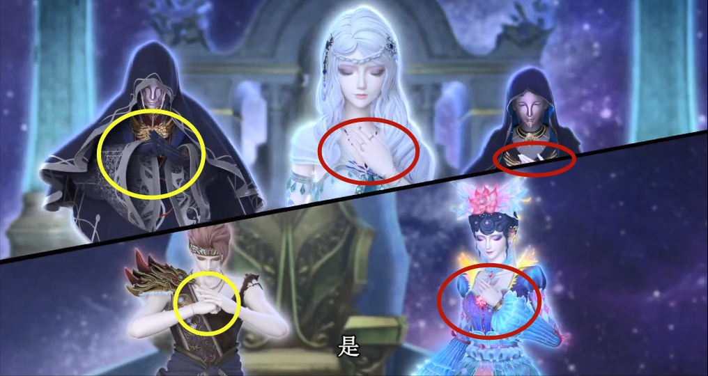 在看到齐娜穿上了薇化服装,戴上蓝紫色渐变手套转身抬手的时候,这个潇洒的施法动作,让人想到了下一刻十阶在见到世王时的样子,每个人都是毕恭毕敬,而且仔细看男仙子是抱拳的手势,女仙子是手放在胸前的行礼动作。