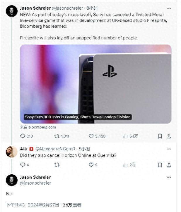 对于《地平线》在线游戏,Jason Schreier则回复说没有。