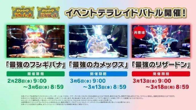 宝可梦朱紫推出最强妙蛙花喷火龙水箭龟活动!最强妙蛙花将于2月28日9点登场!