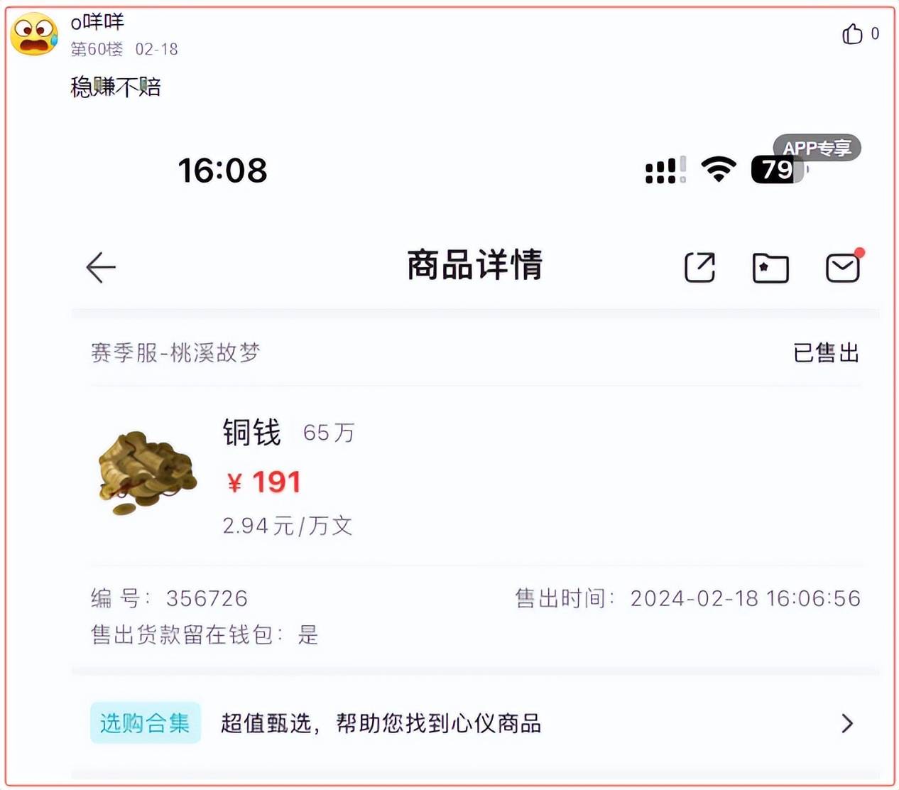 而在一片“看衰”的声音中,还是有一些玩家觉得游戏策划既然做出了这么重要的决定,一定是有两把刷子的。因此,他们冒险的收购了大量铜钱,赌《逆水寒》2.0上线后,金价会暴涨。