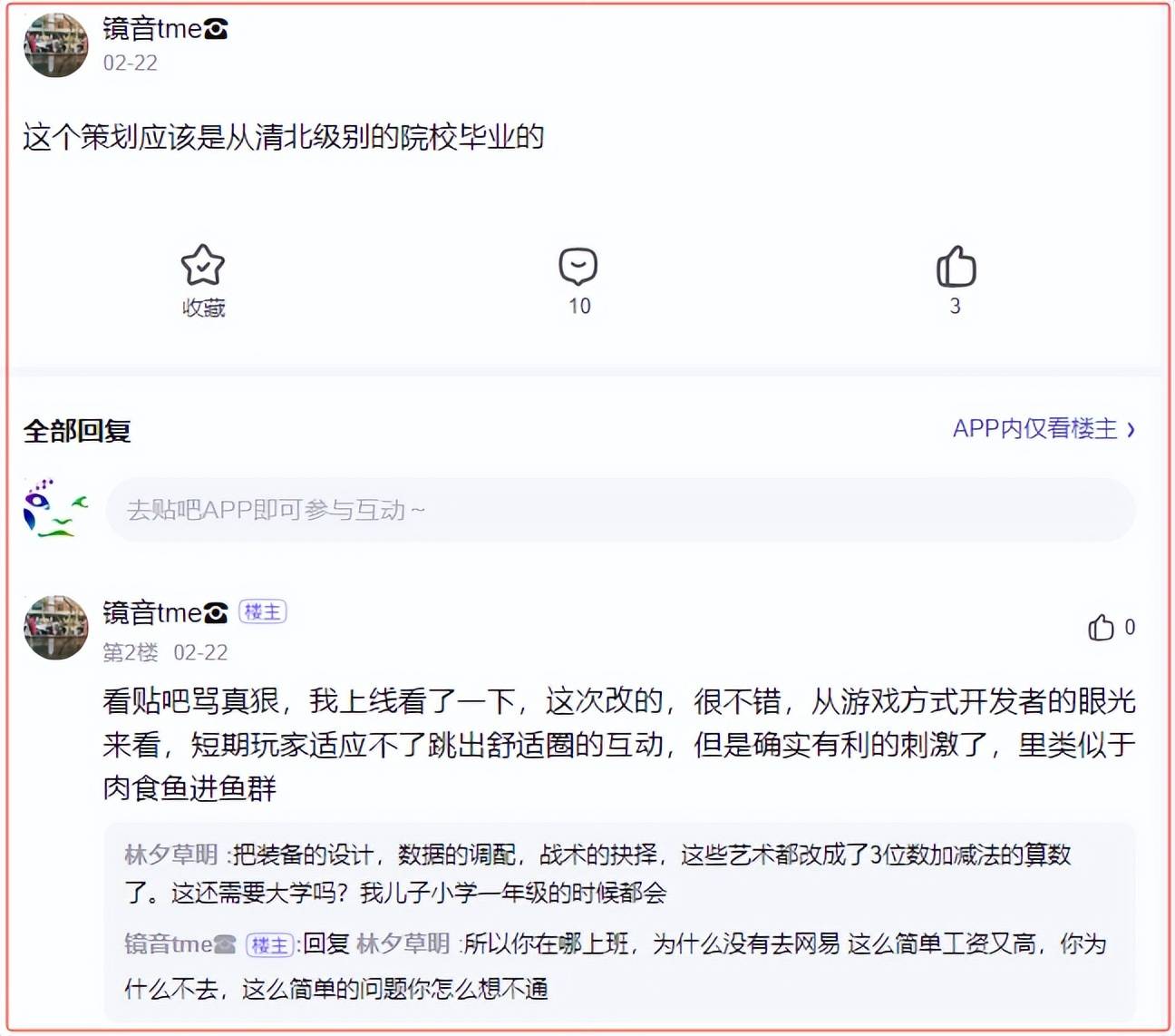 到了这个时候,曾经质疑策划的玩家们全部转换阵营,对游戏策划一通吹捧。很多人都表示:以前是我太大声了,这次经济系统改的很不错。这个策划应该是从清北级别的院校毕业的,真的懂金融的!