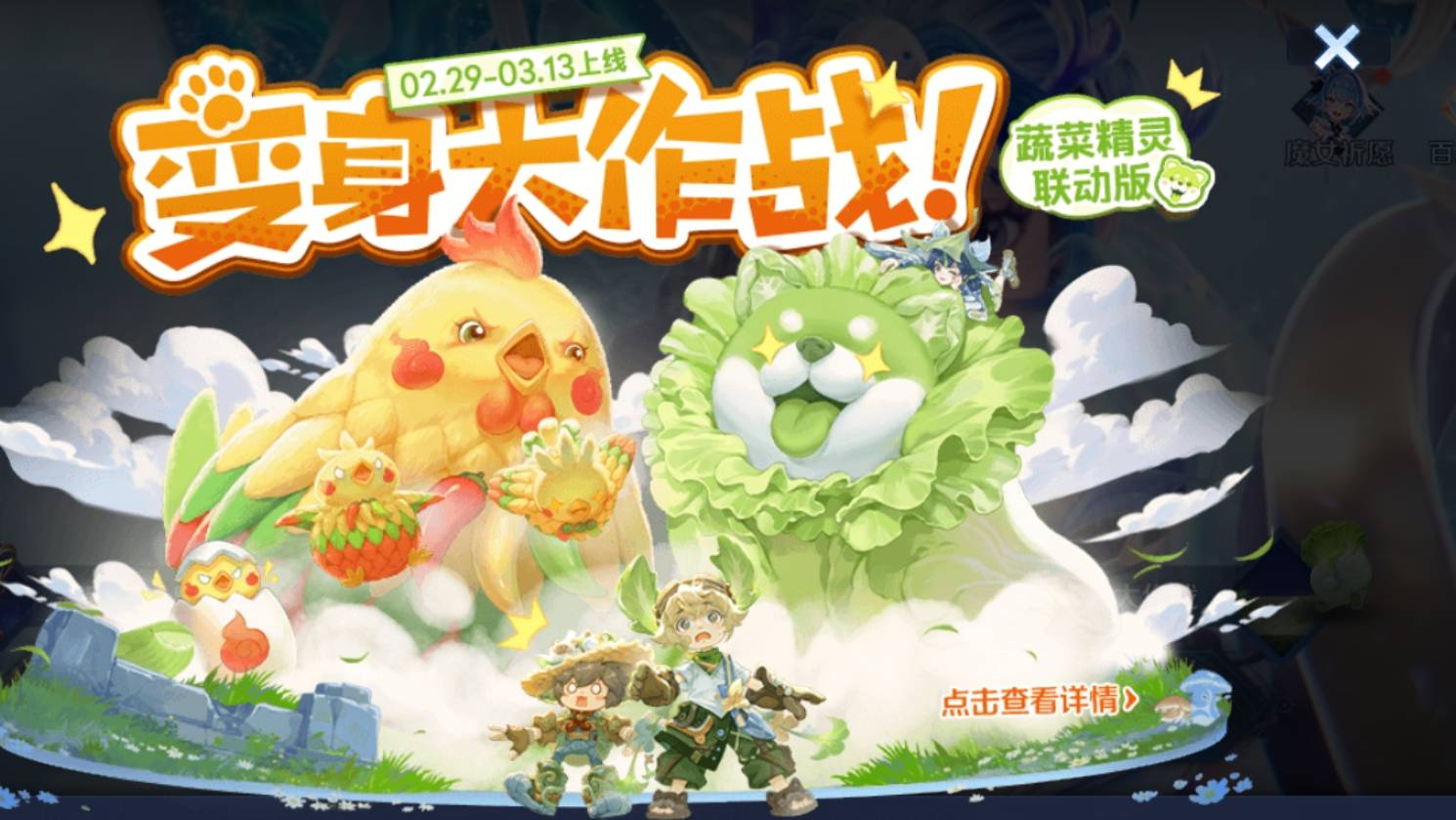 “变身大作战”限时玩法目前还在开启预约领好礼(亲密玫瑰)互动,将在29号更新后上线,此次上线的玩法是和蔬菜精灵联动的,玩家可以变身为白菜狗、辣椒鸡、香菇鹅等,看着还是挺有趣,小编还挺期待体验能够一番。