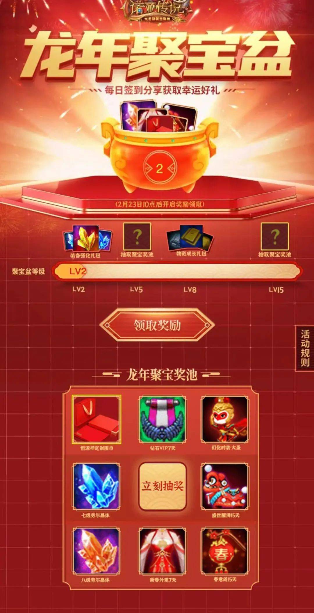 3. 3月3日和4日,满100活跃度且战力达标当天还会抽取三星显示器、双人坐骑流星天马