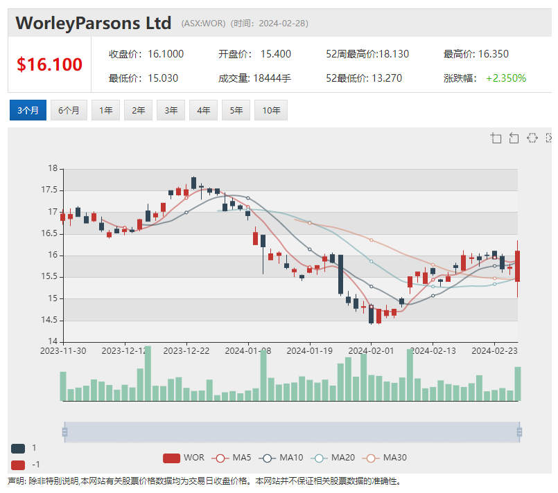 受该公告影响,Worley股价周三午盘上涨。12:49成交价为15.91澳元,上扬0.18澳元,涨幅1.14%。该股近一年的投资回报率为4.88%。