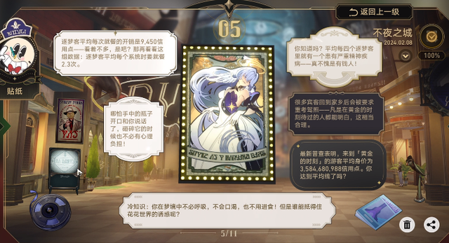 游梦手册里还有不少冷知识、金句、海报等贴纸,有网友表示自己认真把所有贴纸细细读了一遍,通过不同的组合还给自己生成了写小说的灵感,匹诺康尼同人信手拈来!