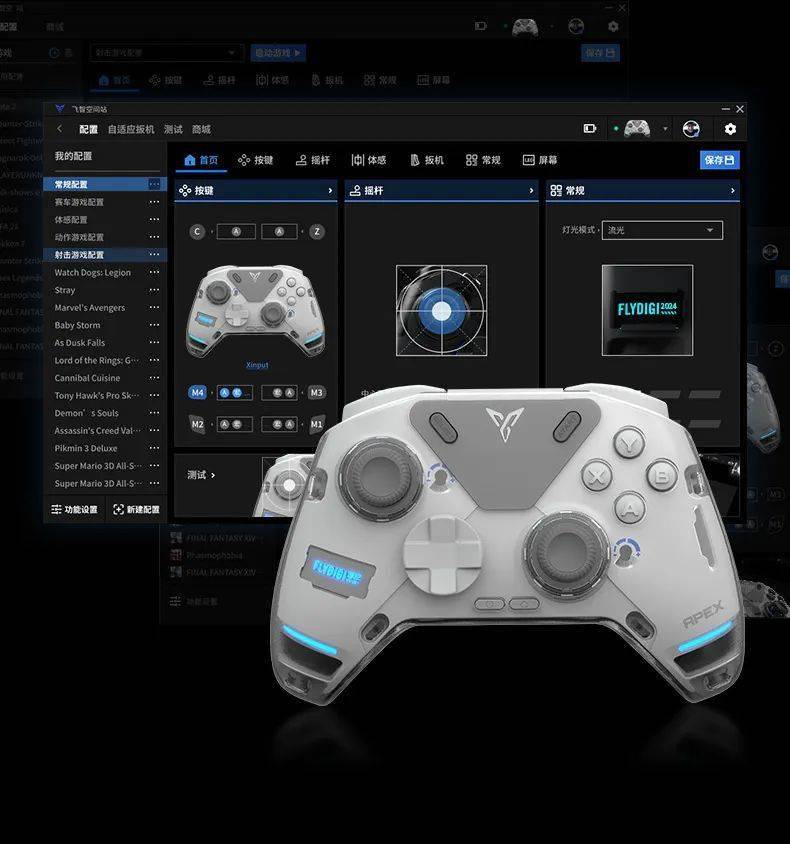 另外,飞智官方也推出了飞智空间站,在飞智空间站可以自己编辑一套或多套想用的按健配置,以适配各种不同类型的游戏,比如赛车、FPS等等。