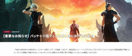 索尼把《FF7重生》光盘印反了!SE紧急发文提醒玩家