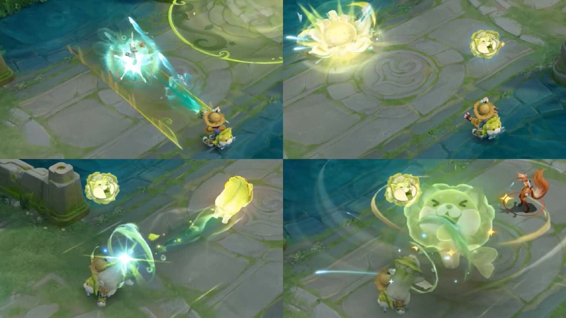 整体的技能特效都是以菜狗为主,不过一技能丢出去的是一个蒜头。
