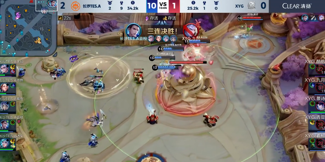 即使是第二把,前面双方也是有来有回的,但是一到10分钟,XYG就开始了,稳定掉点的节奏又来了,TES抓住机会拿下比赛。第三把就更不用说了,单方面碾压,XYG心态估计都出问题了,没有主心骨的战队,想翻盘太难了。