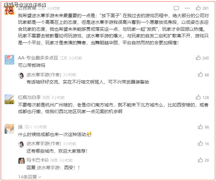 对于这种请玩家教策划做游戏的方式,你是否认可呢?对于《逆水寒》手游的听劝方式,你又是否羡慕了呢?说说你的想法吧。