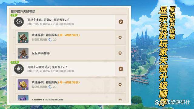 不少玩家吐槽的‘角色等级不够时,根本看不到后面天赋升级所需材料,每次查完又忘记,下次刷还得重新查’。此问题也将在4.5版本得到解决,需突破后才解锁的天赋等级下方会直接给出所需材料,让准备阶段刷材料的旅行者更清晰知道需要啥。