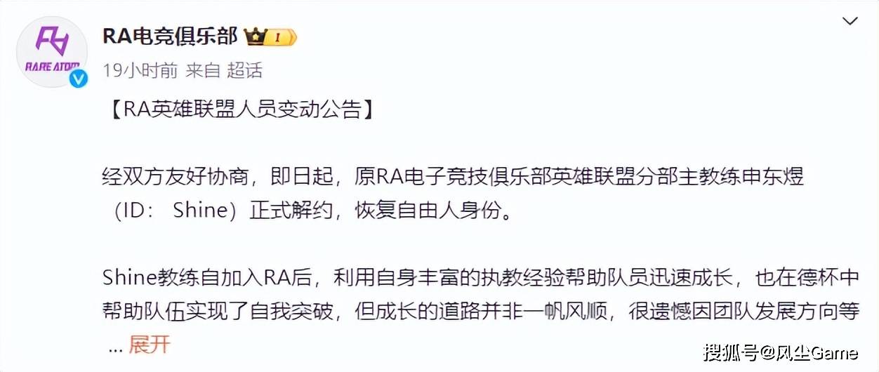 Shine这个ID,可能大部分观众都不太熟悉,在DRX夺冠那一年,他也是教练组中的一员,所以算是世界冠军级别的主教练,公布纪录片的同时,RA和Shine教练也是正式解约,恢复了其自由人的身份,解约可能说的好听了一点,其实就是俱乐部,把Shine教练给开除了。