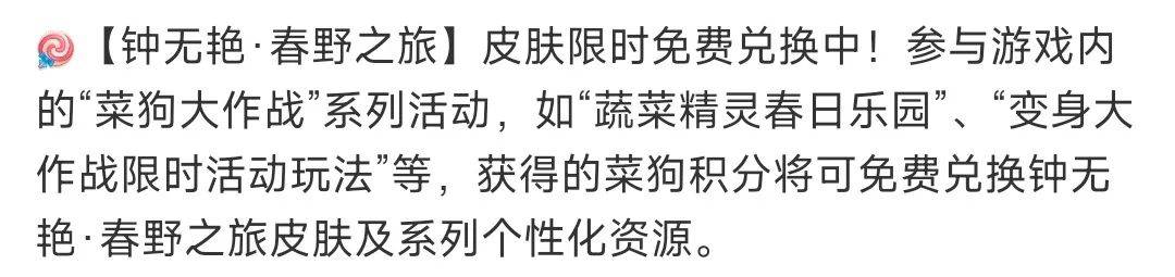 钟无艳这款皮肤,联动的蔬菜精灵形象是大蒜喵,皮肤品质是勇者,可以通过“菜狗大作战”活动进行获取。