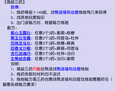 另外,如果手上如果有炼药技能较高的角色,建议通过订购门派秘方的方式获得秘方三药,如果出了大金、九转、五龙等常用三药,可以轻松血赚一笔!