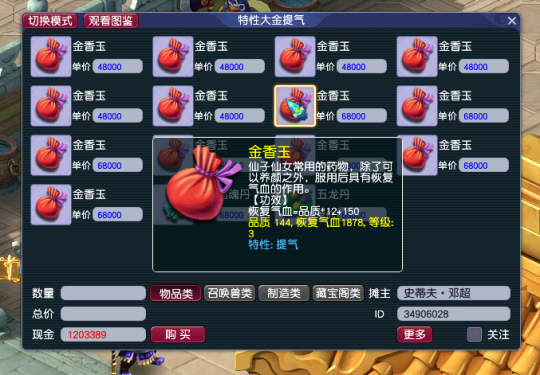 如果觉得低级三药赚钱太慢,你还可以试试高级三药。在药引充足的情况下,高级三药的炼药成本并不高,只要重点多炼黑玉云苓膏和百炼乌金丸,就可以轻松致富。毕竟,这两个药品几乎是所有PK玩家的必备药品,只要高于120品就可以卖到8-10W,如果附加特性的话12-15W也会有人买。