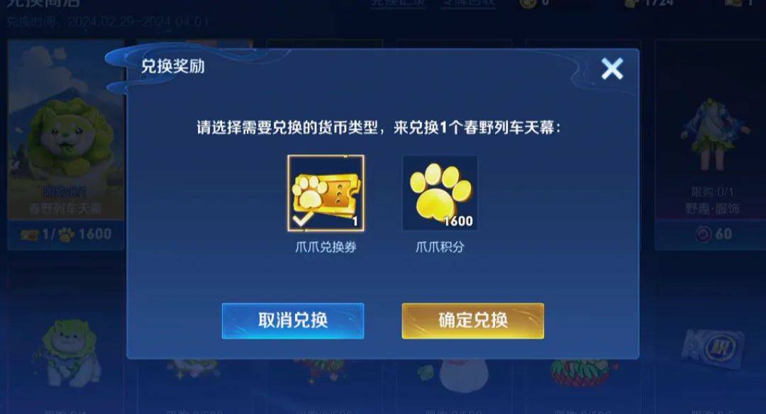 首先你要知道我们兑换天幕的游戏道具有两个,一个是爪爪兑奖券,一个是爪爪积分。