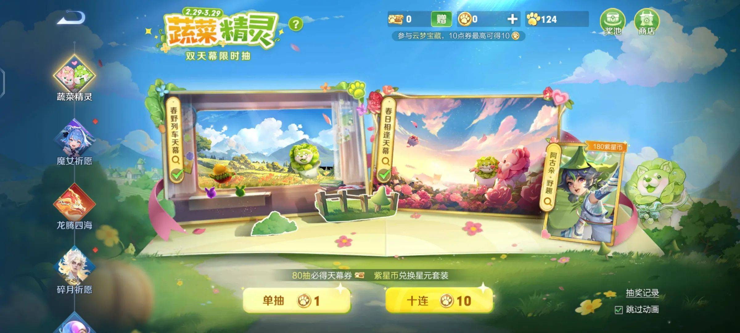 今天,游戏也是迎来了一波更新,这一次更新,其中最让人关注的就是蔬菜祈愿活动当中的两款天幕,以及阿古朵的星元皮肤。