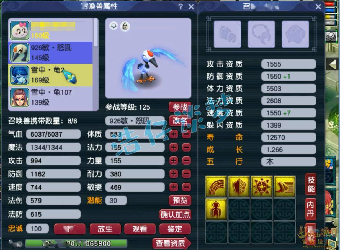 8技能龟速血宠狂豹,速度还是不够慢,速度资质降到100就完美了!