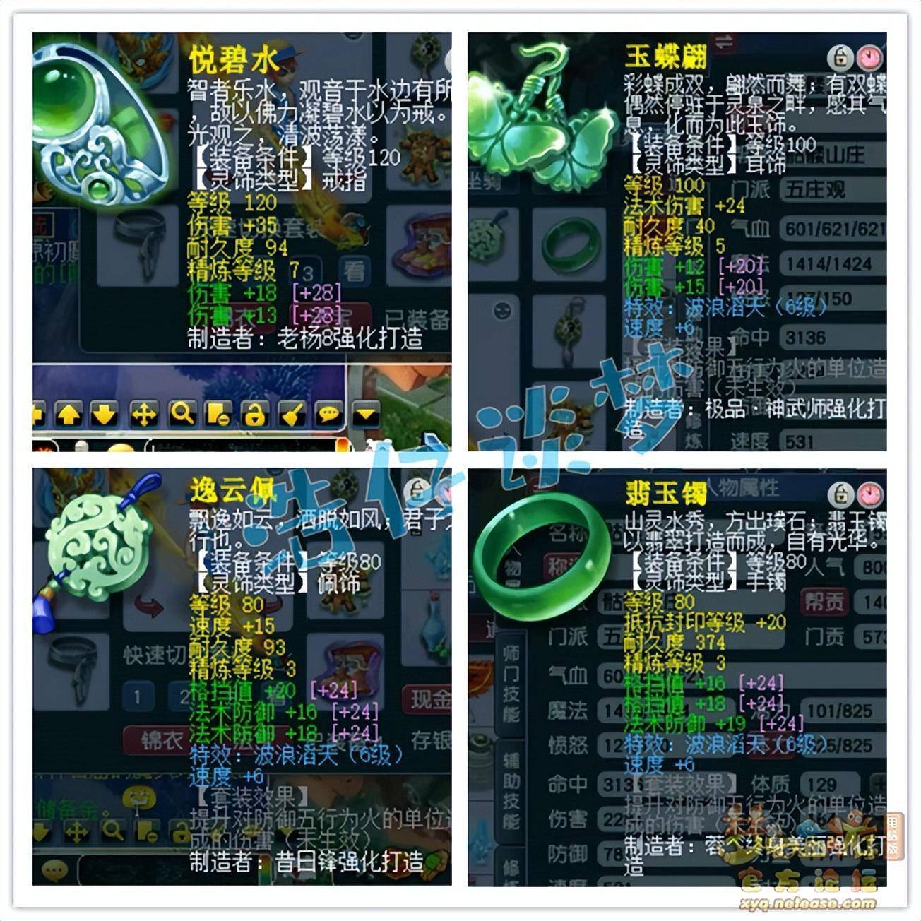 戒指和耳饰下排都是双伤害,佩饰下排双法防一格挡,手镯下排双格挡一法防!