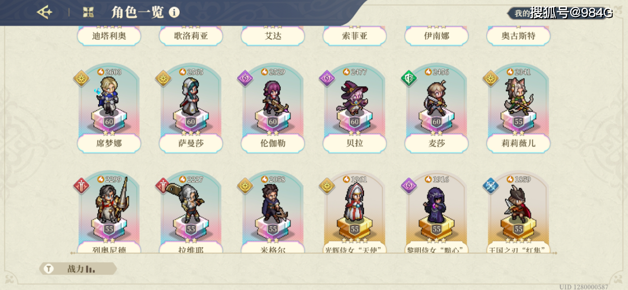 首先,零氪最大的门槛就是抽卡数量限制,在G哥奋战的90余天中,为了赶门内进度刷见闻等级,大部分希望晶石都投入到了买钥匙这一项目中,在第91天攻略完70级神兵3后,累计抽数为410次,抽出彩色角色15位,重复了2位,分别是大皇子迪塔利奥和伊南娜,并且是“歪”出来的。何谓歪呢?就是明明在抽奥古斯特的UP池,结果却出来一个泰登。