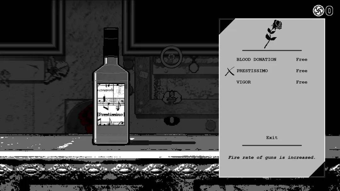 本作是一款极为爽快的快节奏射击游戏,采用俯视角玩法,拥有各种枪械和技能。玩家在黑白单色的豪宅冒险,寻找失落的爱。