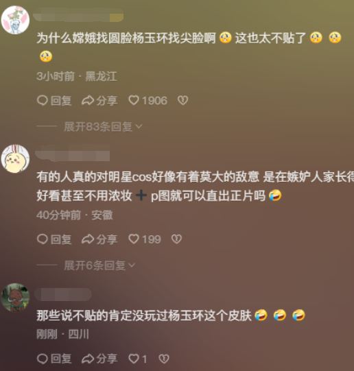 其中就有一条高赞评论表示:“为什么嫦娥找圆脸杨玉环找尖脸,这也太不贴了?”