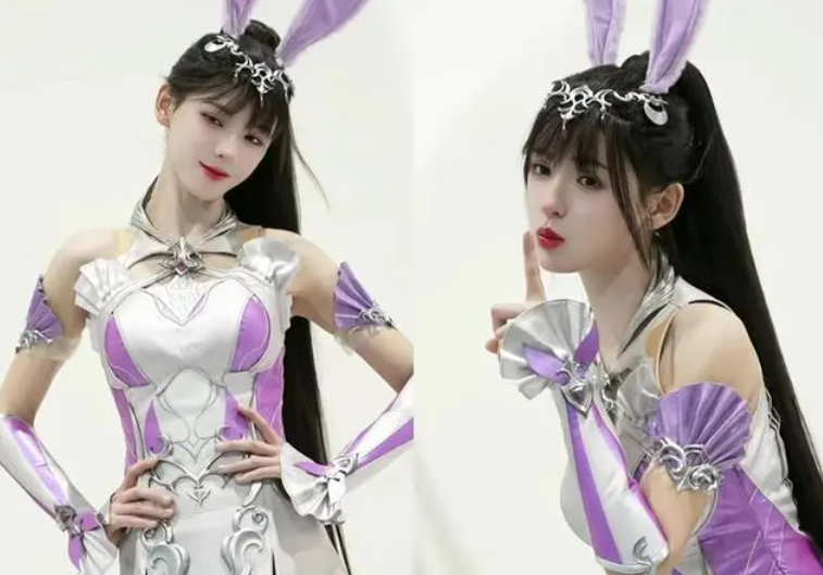 照片中的她,身姿曼妙,面容娇美,与游戏中的杨玉环形象相得益彰。