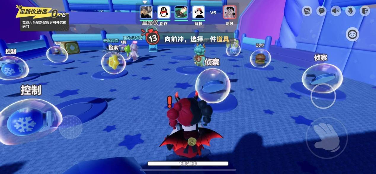 刚进入游戏,如果你是星宝阵营的话,可以拥有选择道具的机会,这些道具会辅助你完成对局。虽然乍一看玩法与《第五人格》有所出入,但是一看道具效果,相信很多玩家都会一目了然。比如控制就是拥有短暂晕眩监管者的空军,而飞腿则是能够直线冲刺直到撞到障碍物之后才会停止的前锋,而治疗则是能够救治自己或者队友的医生等等。