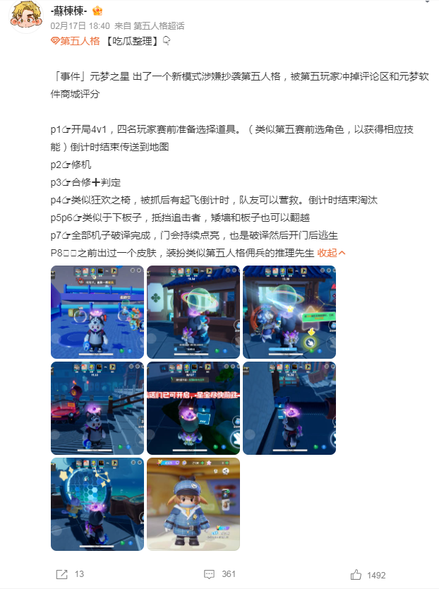 《元梦之星》的这一操作也引起了不少《第五人格》玩家的不满,甚至有玩家直接整理了“大王别抓我”模式中抄袭《第五人格》的证据来进行回应。