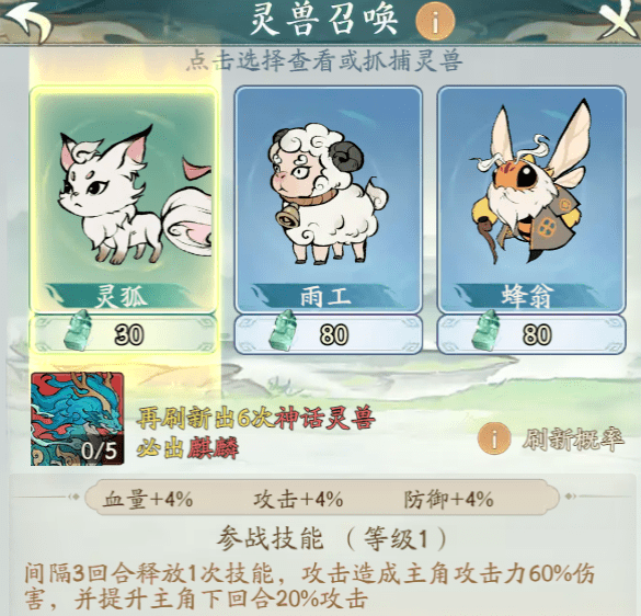 二、平民灵兽推荐:灵狐、白虎、麒麟、小蜜蜂