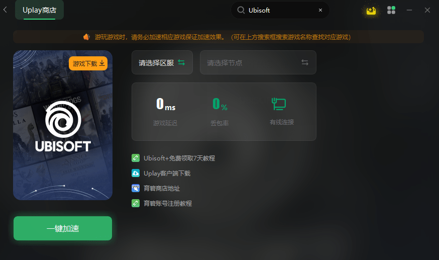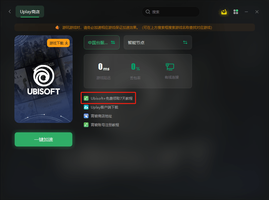 首先玩家需要打开奇游工具,并且在里面搜索Uplay商店,接下来玩家需要选择中国台湾区服,选择一键优化。这样做的目的是为了有效的提升局部的网络,减少卡顿,还有闪退等问题出现的概率。