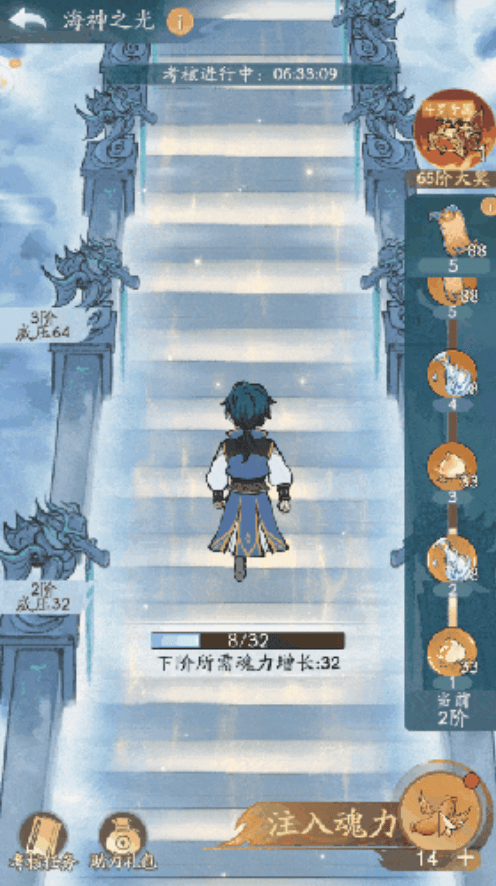 在游戏中,升级是提升实力的关键。建议先将仙树升级至2级,然后再升级至3级以获得加速道具。在升级至4级时,如果没有广告观看的机会,可以考虑花费50个玉石购买30分钟的加速道具。之后的升级过程中,尽量依靠打怪获得仙瓶,只有差几个仙瓶时才考虑购买加速道具。到达7级后,不再购买加速道具,安心等待升级。