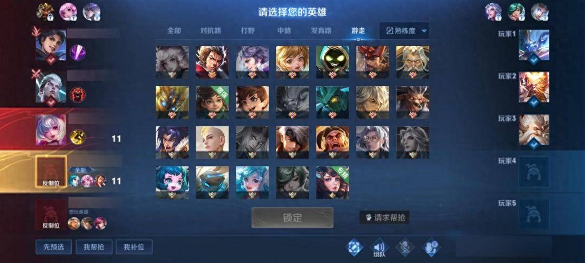 我方有一个亚瑟,如果出肉的话就算是有前排了,不出肉就算是半个,这个比较灵活,我们选择也就比较灵活。对面阵容有一个牛魔是比较肉的,又有花木兰和韩信两个比较花哨的英雄。看到我方有一个安琪拉,我是想要拿一个张良跟他配合,同时可以反制花木兰和韩信的,只要亚瑟愿意出点肉容错率还是蛮高的。