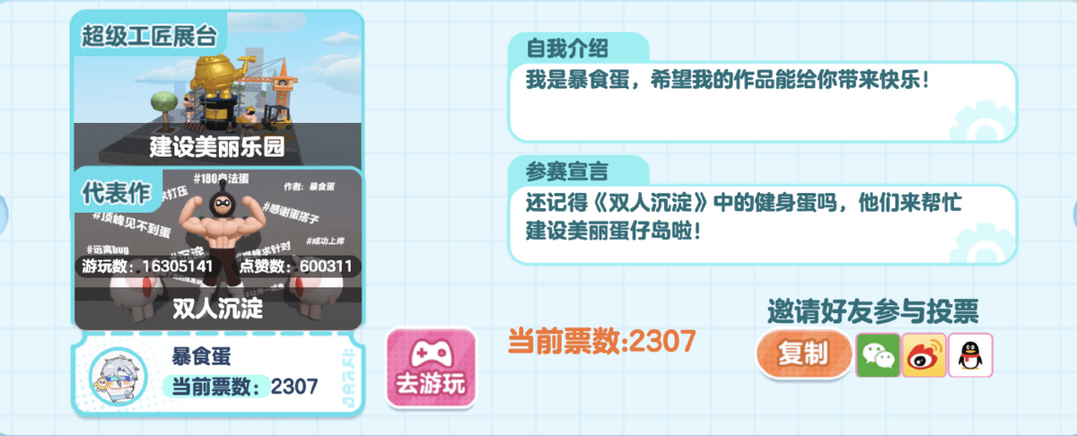 随着投票环节结束,被全民票选出的500名优秀创作者除了获得“超级工匠”的称号,还将与官方进行正式的线上签约,参与到蛋仔岛年度UGC大事件的共建中。