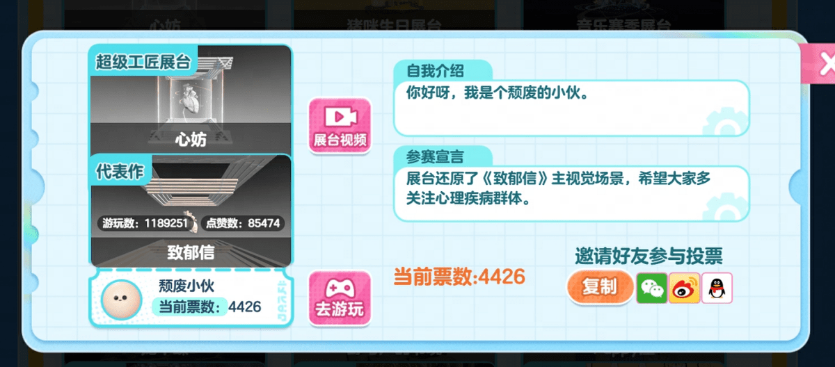 曾以反战地图【北境之歌】而广受玩家熟悉的作者【颓废小伙】,将关注点落在了心理疾病群体上。他打造出的【心妨】展台以个人作品【致郁信】为主要灵感,用被丝线缠绕的孤独灰色心脏细腻传达出患者的情绪,加深玩家对这一群体的了解和认知。