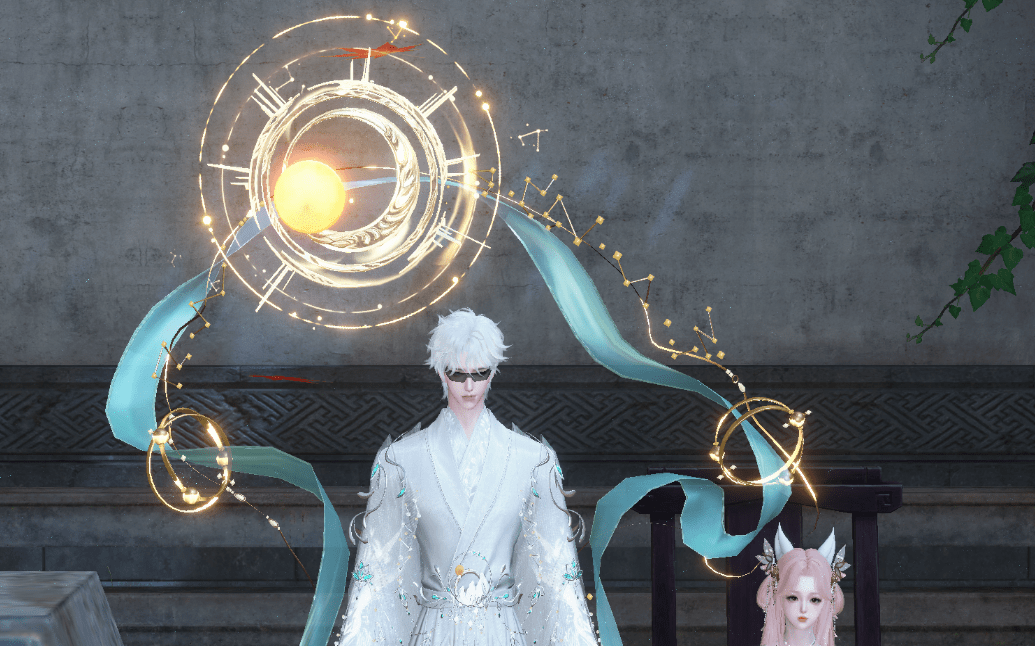 于是贴心的《逆水寒》手游就上线了一套白泽时装,头上还顶着一轮金光灿灿的太阳背饰。