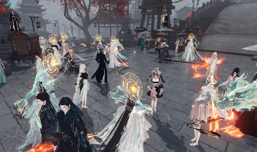 逆水寒手游玩家个个背着太阳,一夜间,整个虹桥都要被烧糊了