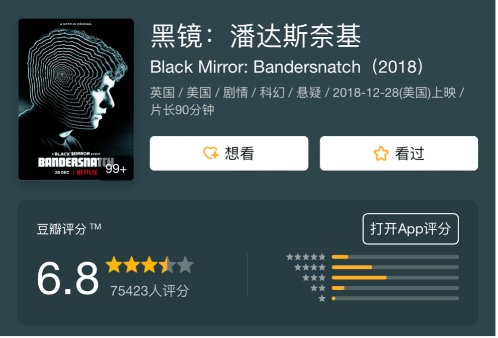△《黑镜:潘达斯奈基》豆瓣评分界面(图源网络)