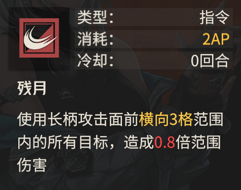 基础技能【残月】是白月的专属技能,范围输出的特点让其具备了更多是打残对手的效果,而很难一击让对手毙命,所以这个技能的佩戴与使用大家需要视情况而定。