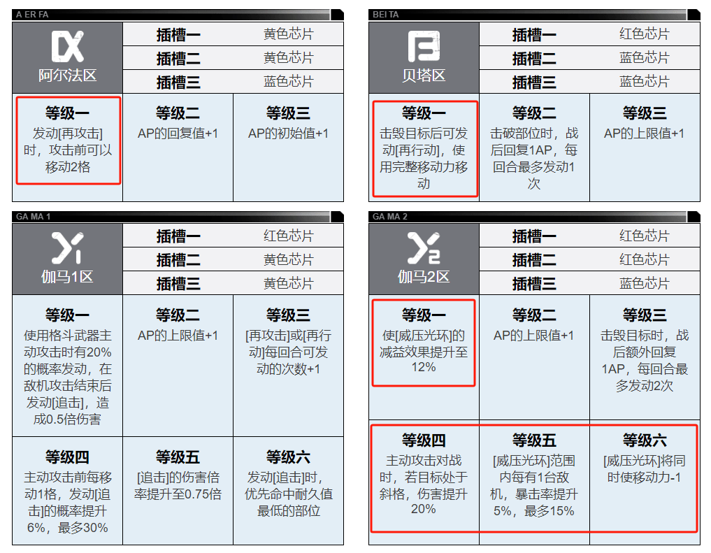 然后在神经驱动部分,白月可以优选“格斗属性”、“格斗命中”、“重型机兵暴伤抵抗/抗暴”等芯片。