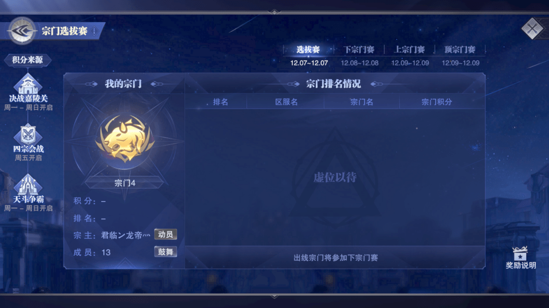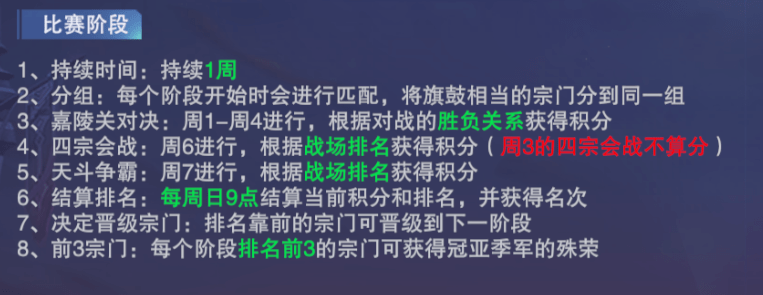 然后此次新加的这个宗门选拔赛玩法,其主要逻辑和规则可以总结为: