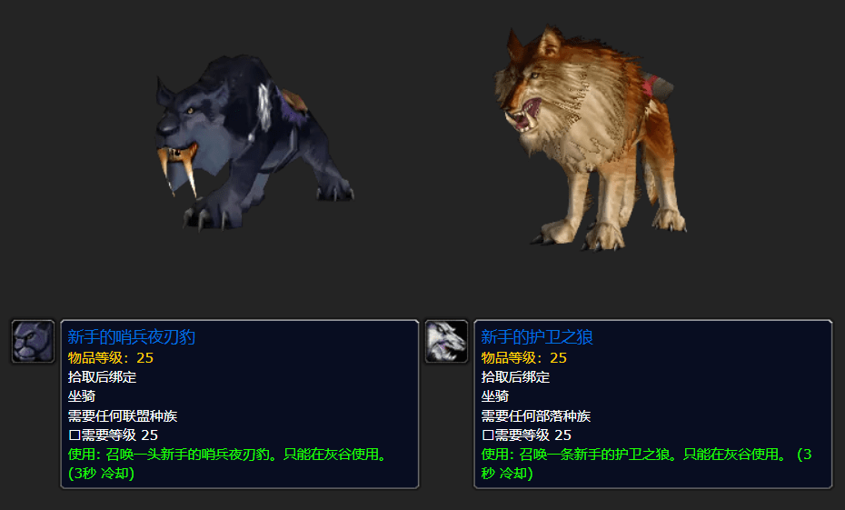探索赛季服P1阶段的封顶只有25级,达不到40级的小马要求,但官方推出了两个专供战场(灰谷地图)使用的坐骑,“新手的哨兵夜刃豹”和“新手的护卫之狼”。