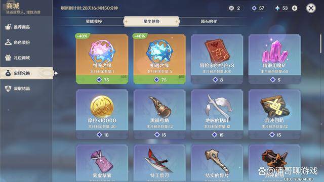 每到月初,尘辉商店和深境螺旋渊都会刷新。其中,星尘商店可以兑换10枚抽奖道具,星辉商店可兑换一些四星武器和角色。至于4.2下半深渊,与上期一模一样,只有buff有所变动,之前满星的玩家轻松拿满600原石。
