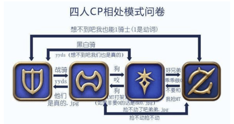 在FF14之中有4个坦克职业,分别是战士、骑士、绝枪、黑骑,因为职业图标是蓝底,故也被玩家称之为“蓝职”,普通的四人本是1蓝2红1绿构成,所以不存在谁当主T问题(除非有人忘开盾姿?)