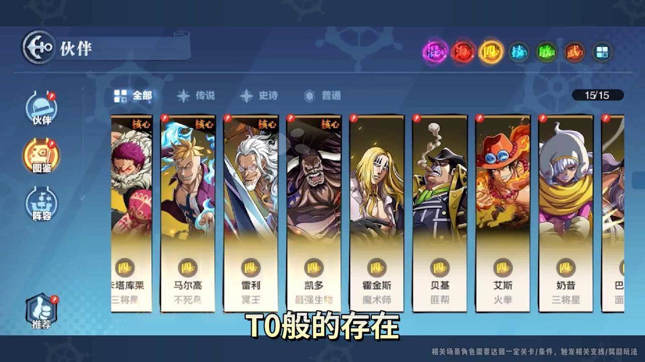 T0级别的角色,山治、索隆、黄猿、百兽凯多、青雉、路飞,无一不是实力非凡,无人能敌的存在。他们的技艺之高,让人望尘莫及,令人叹为观止。凯多的大招不仅免疫伤害控制,同时还附带群体牵引效果,对敌人造成了百分之六百七十五的伤害,打谁都是直接碾压,开局就是胜利,问鼎榜一妥妥的。